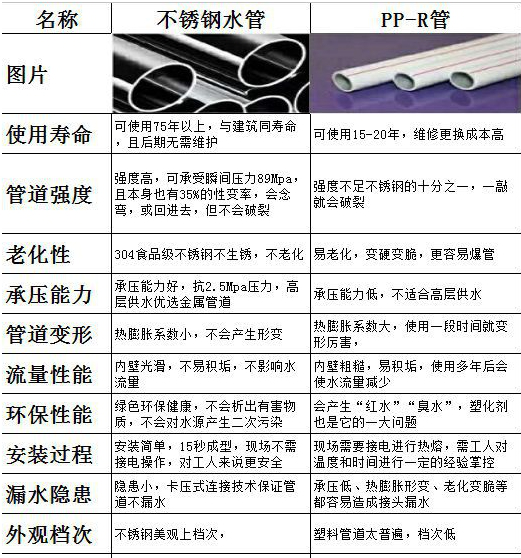 只有在這之后,人們才明白,作為給排水管道,它必須具備以下特點(diǎn):1.使用壽命長(相當(dāng)于甚至超過建筑物的使用壽命,達(dá)到70年以上)2.對水質(zhì)無污染,無結(jié)垢,管道無堵塞,價格相對實(shí)惠。不銹鋼水管完全滿足了所有優(yōu)點(diǎn),是真正的環(huán)保、健康、無污染的,是最完美的給排水管道解決方案。