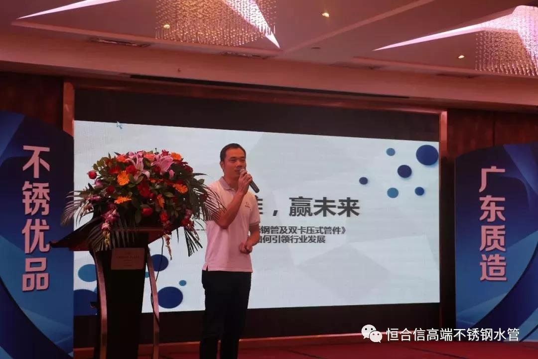 恒合信管業(yè)總經(jīng)理呂春榮作為廣東省不銹鋼材料與制品協(xié)會(huì)不銹鋼水管委員會(huì)副主任,在本次論壇會(huì)議上主旨演講了《識(shí)標(biāo)準(zhǔn)?贏未來(lái)——淺談<不銹鋼管及雙卡壓式管件>團(tuán)體標(biāo)準(zhǔn)如何引領(lǐng)行業(yè)發(fā)展》。